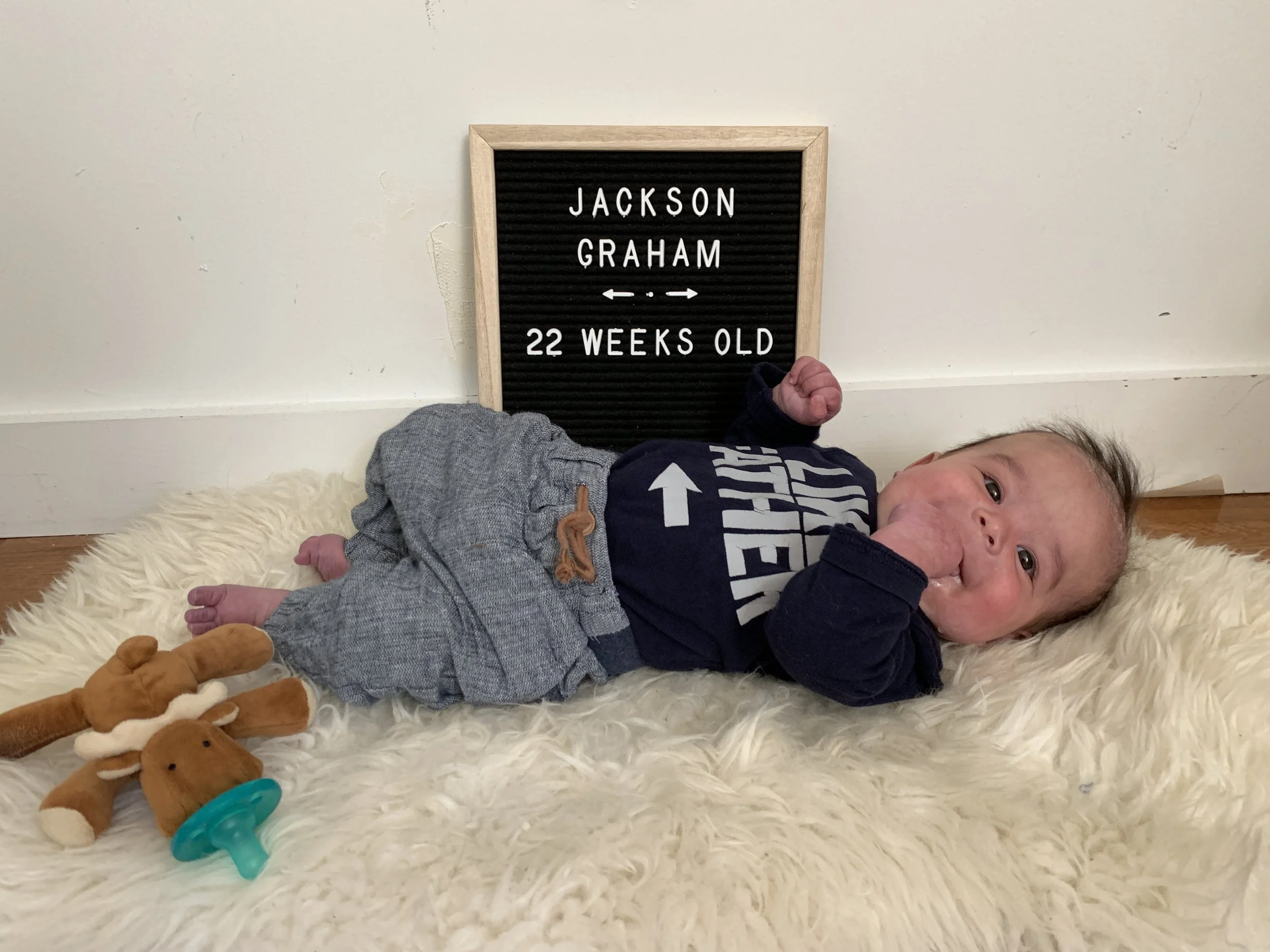Jackson is 22 weeks old today! He turned 5 months old yesterday, where we spent the entire day traveling home from Hawaii.