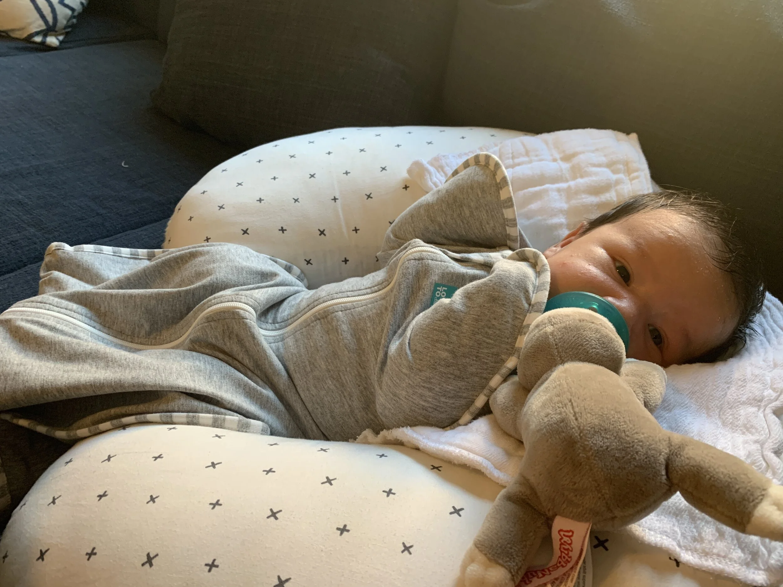 Luca is awake usually for an hour at a time, with a two hour stretch right before bedtime. He is becoming so much more alert this week! He is really responding when we talk to him, and we get to see his beautiful eyes a lot now! I feel like Luca is on the verge of figuring out how to smile, which I can’t wait for!